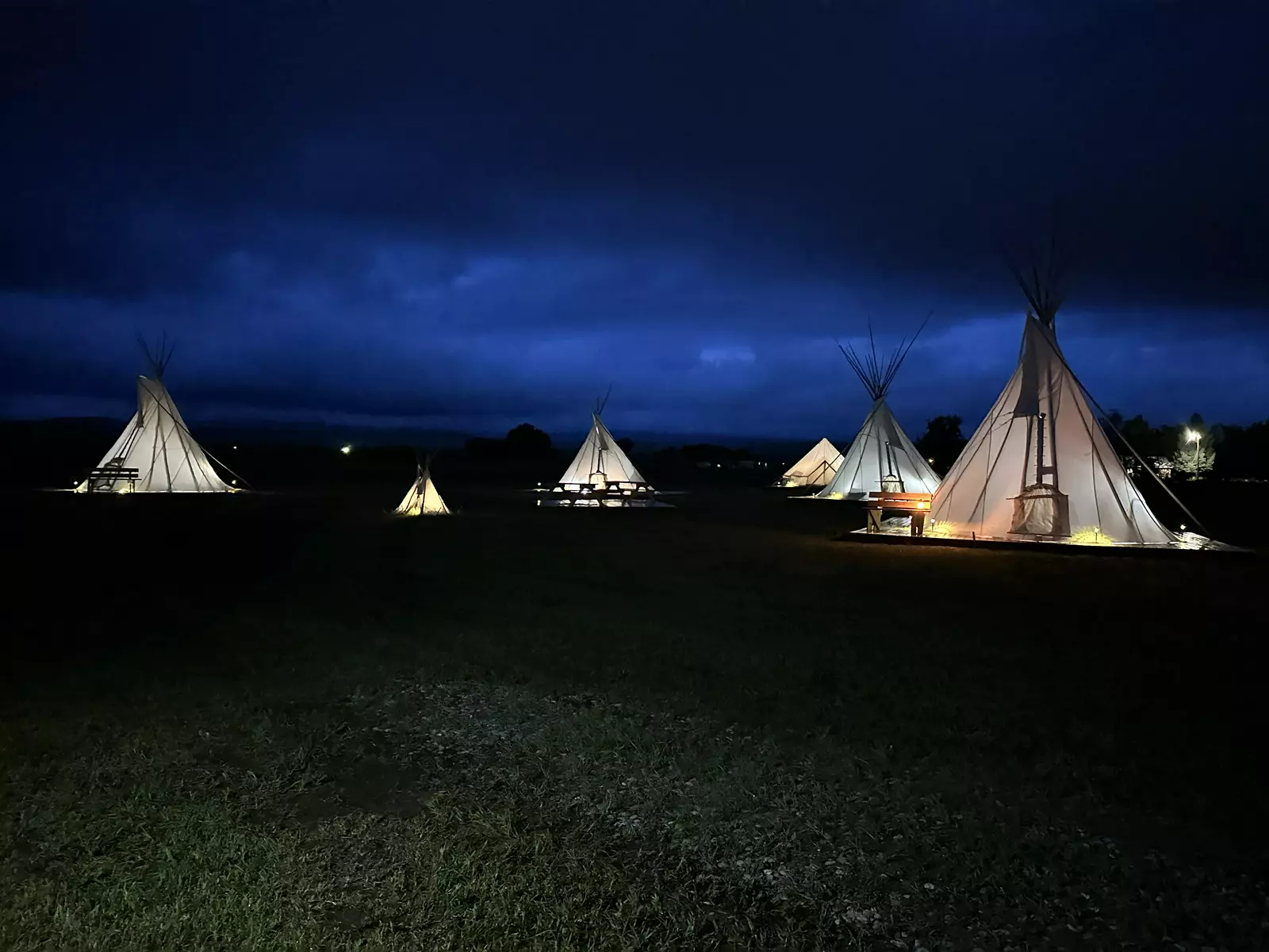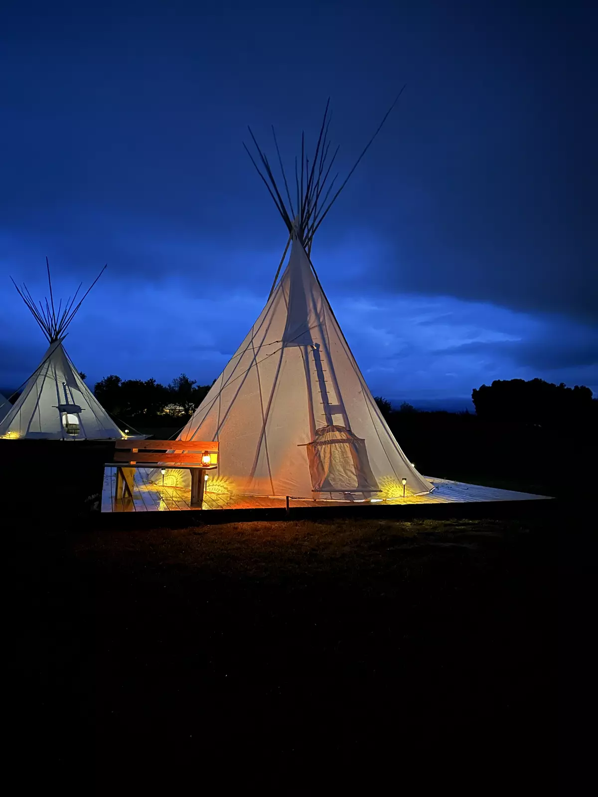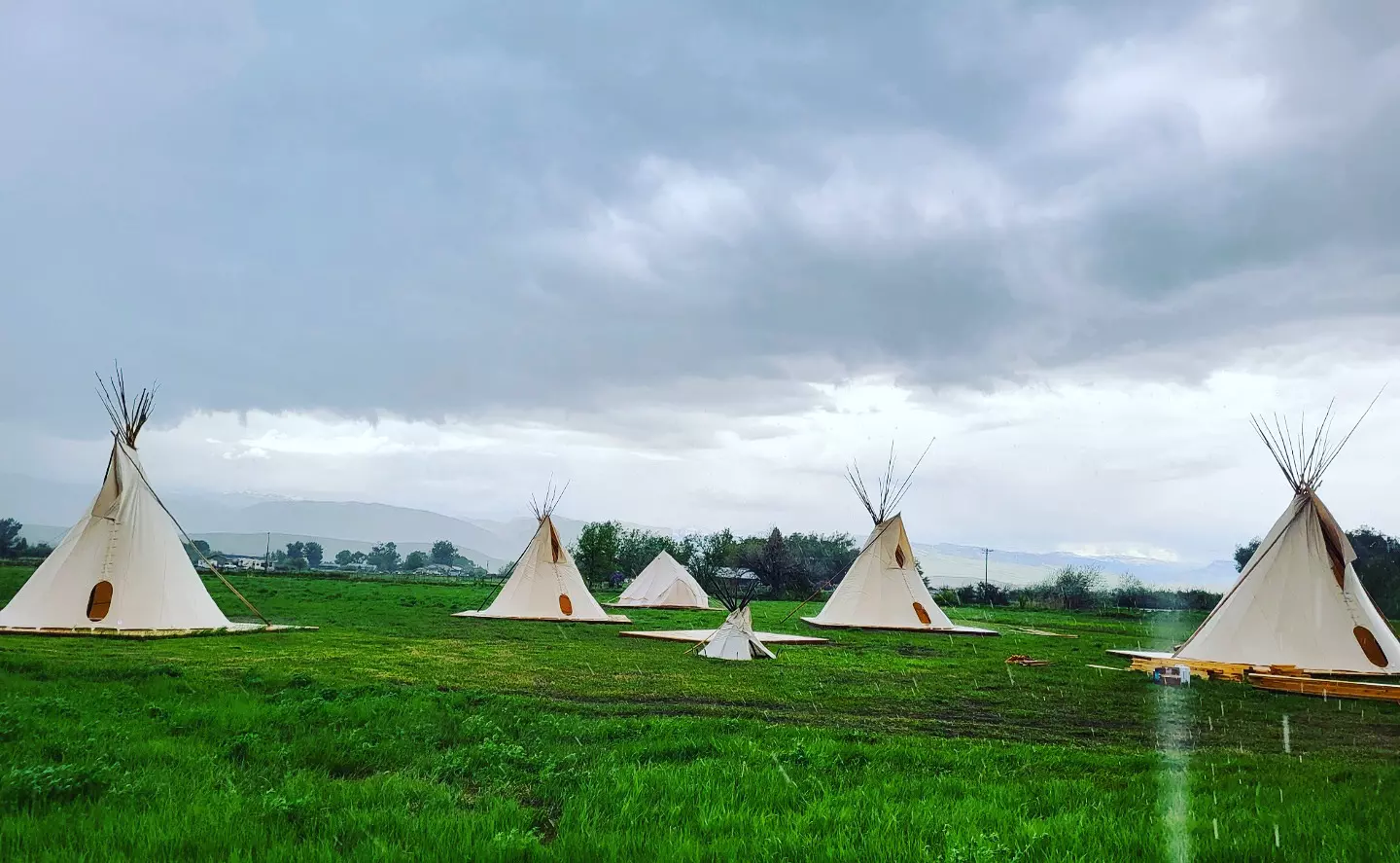 Glamping I’m Tipis at the base of the Wind River Mountains in Wyoming.
